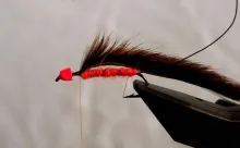 , so my brown zonker strip was combined with an orange cone head for weight as well as color, and orange hackle and rubber legs for color and action.