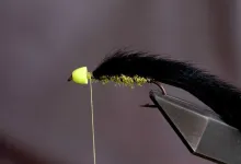 There's no big deal in tying this fly as long as you are a little careful with the material sequence. I tend to sometimes leave a bit too much space behind the cone. The hackle and the rubber legs should ideally "spring" from behind the cone, the base being invisible. I actually like the fly more "compressed", but it doesn't do a big difference fishing-wise.